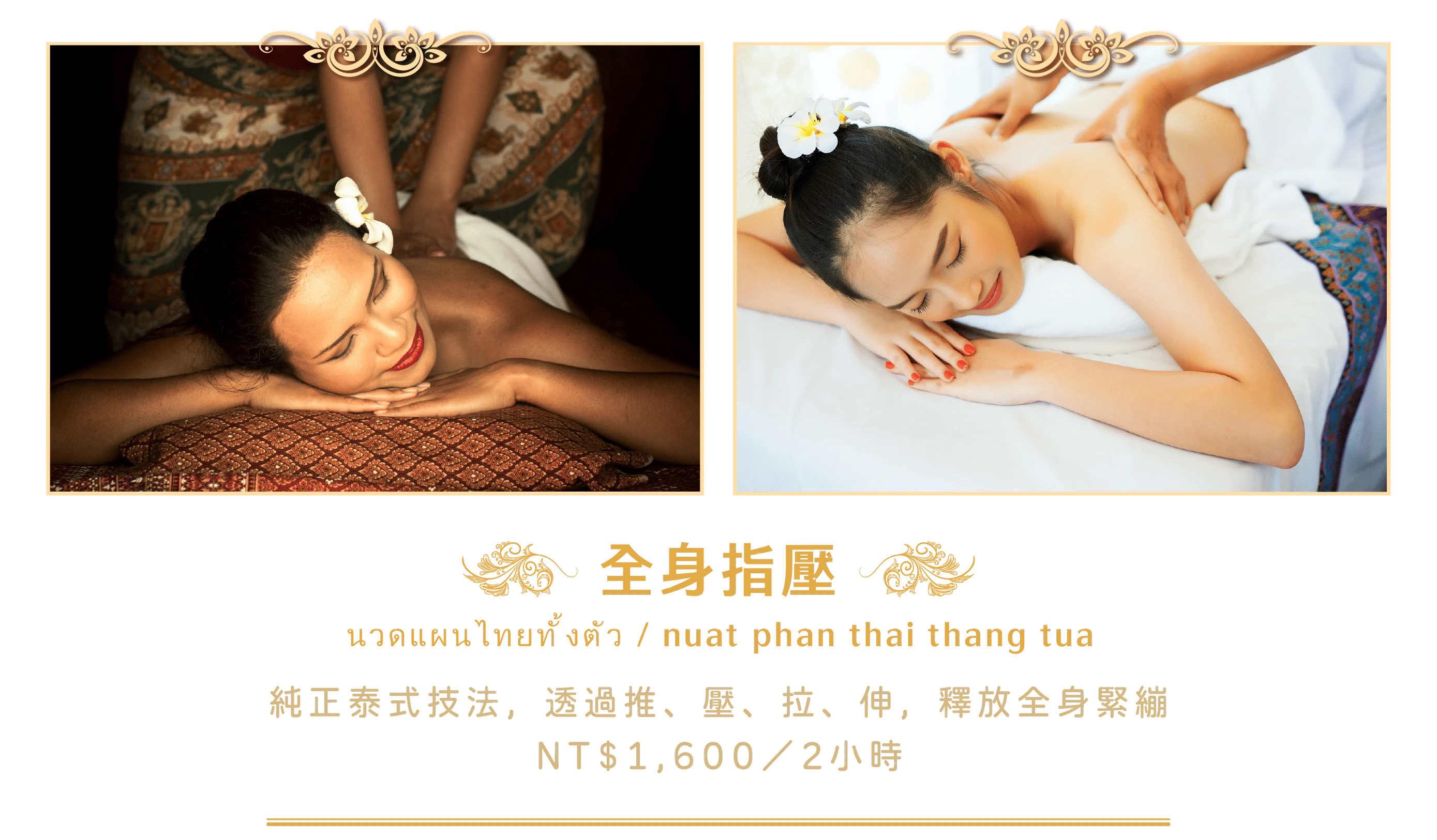 純正泰式手法,透過推、壓、拉、伸,釋放全身緊繃 NT$1,600元/2小時