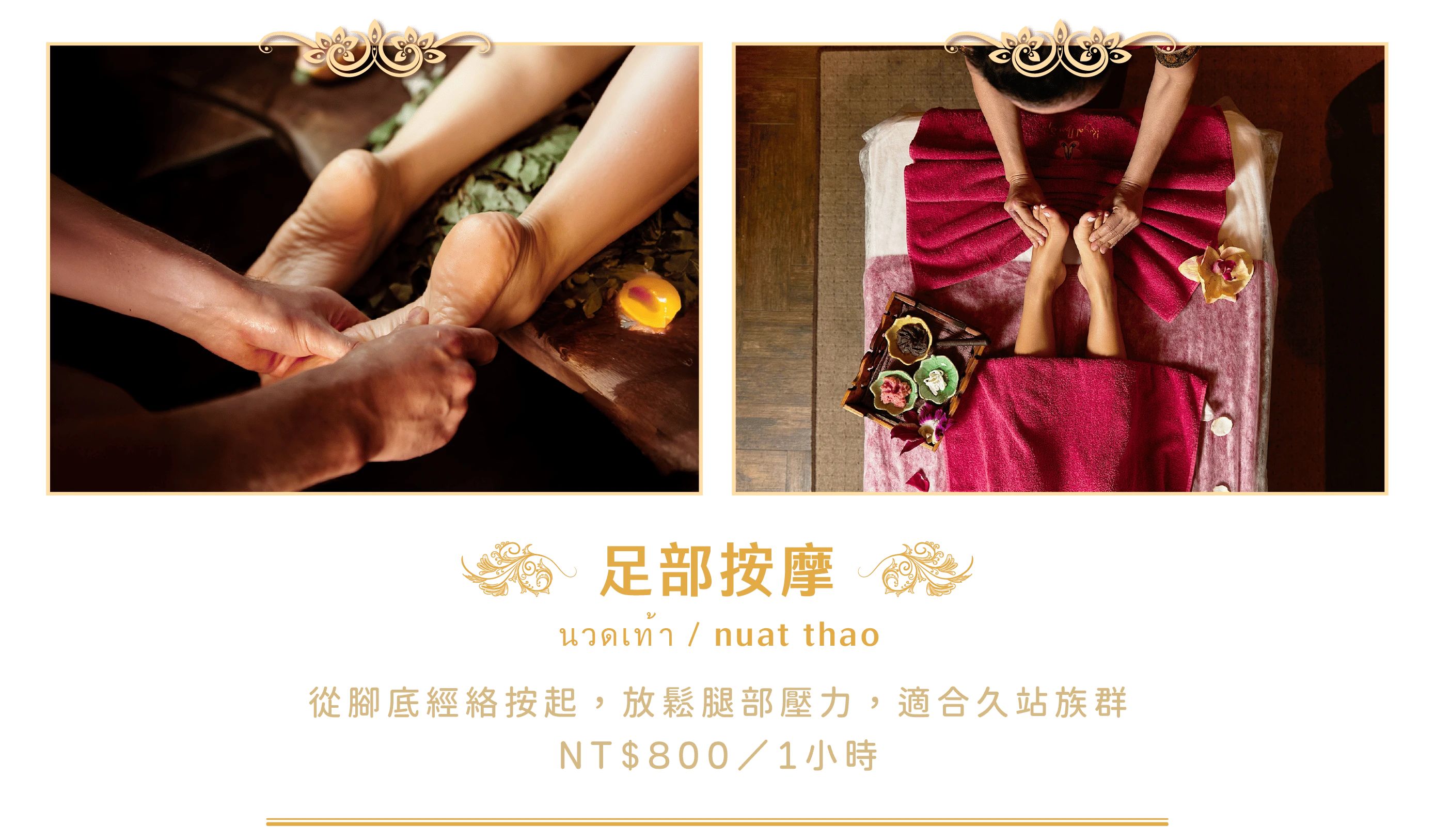 從腳底經絡按起,放鬆腿部壓力,適合久站族群NT$800元/1小時